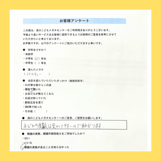 「子どもの度数は変わりやすいので助かります。」とご感想頂きました
