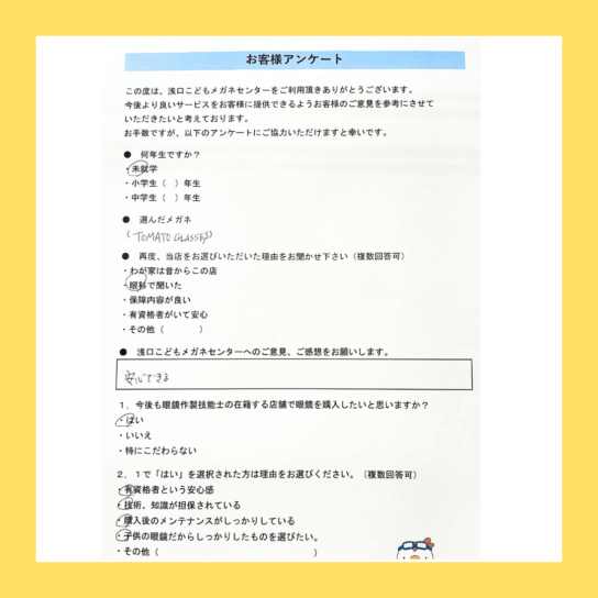 3歳の男の子にレンズ度数交換3年保障付きでご購入頂いたのは