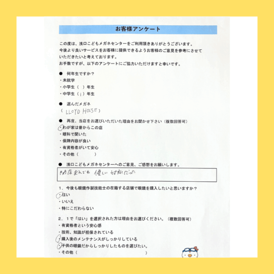 中学1年生の男の子に、レンズ度数交換3年保障付きでご購入頂いたのは